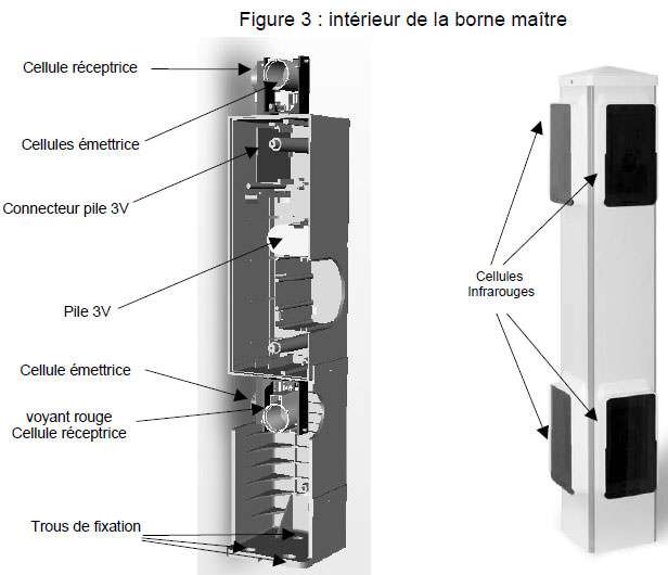 - Positionnement des bornes en s'assurant que les bornes infrarouges soient face à face. Les bornes doivent être au minimum à 3 mètres les unes des autres et au maximum à 20 mètres.