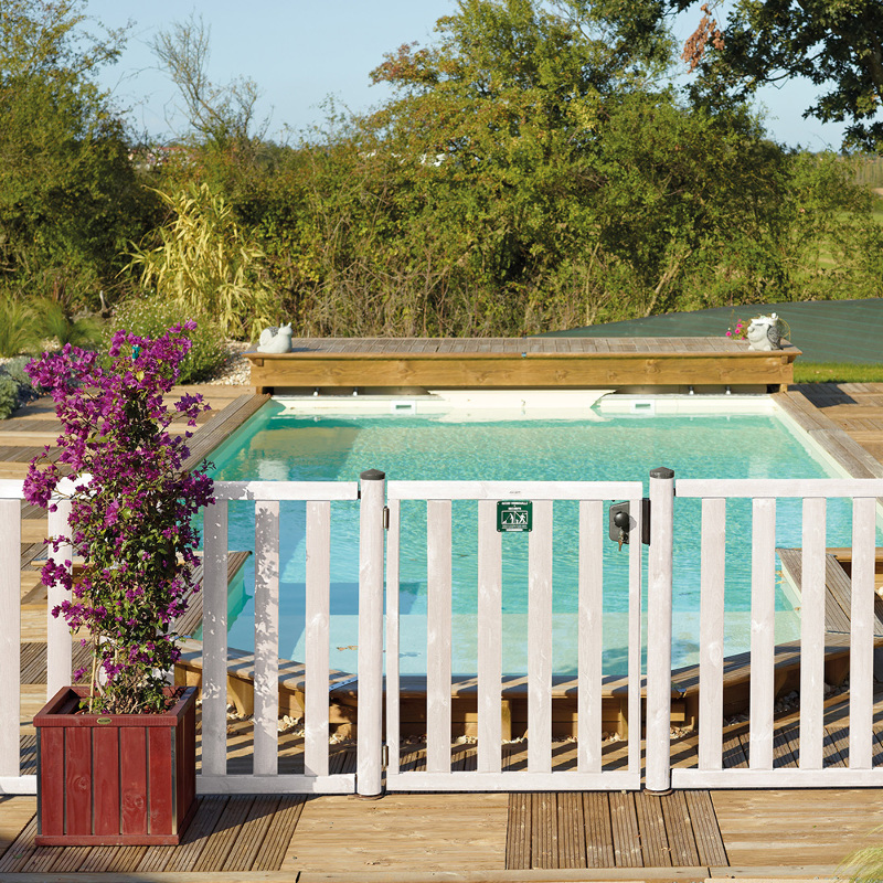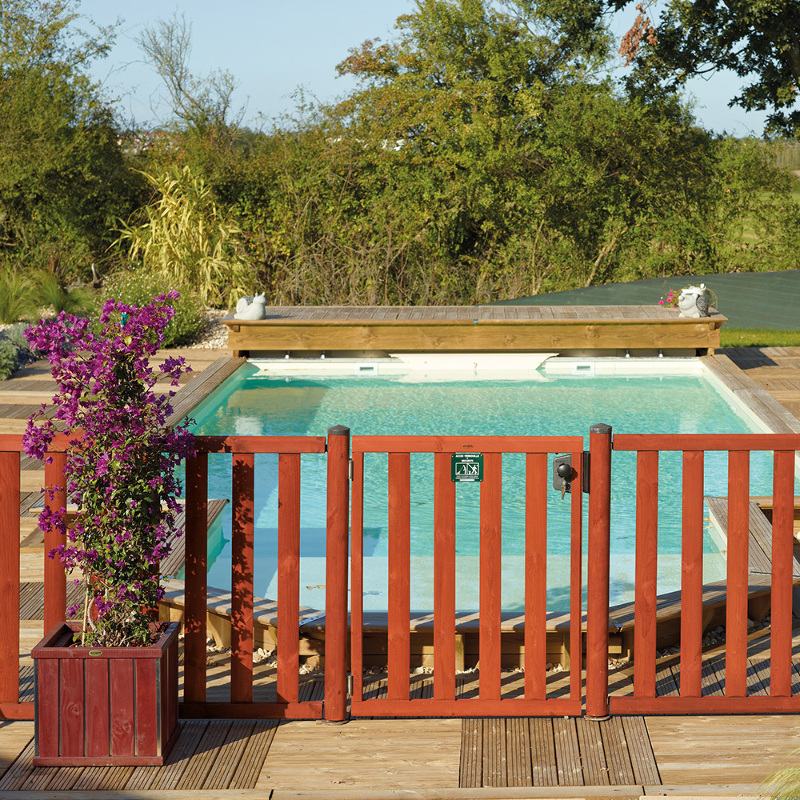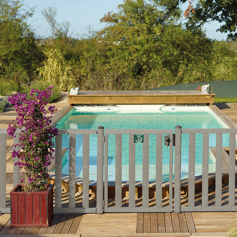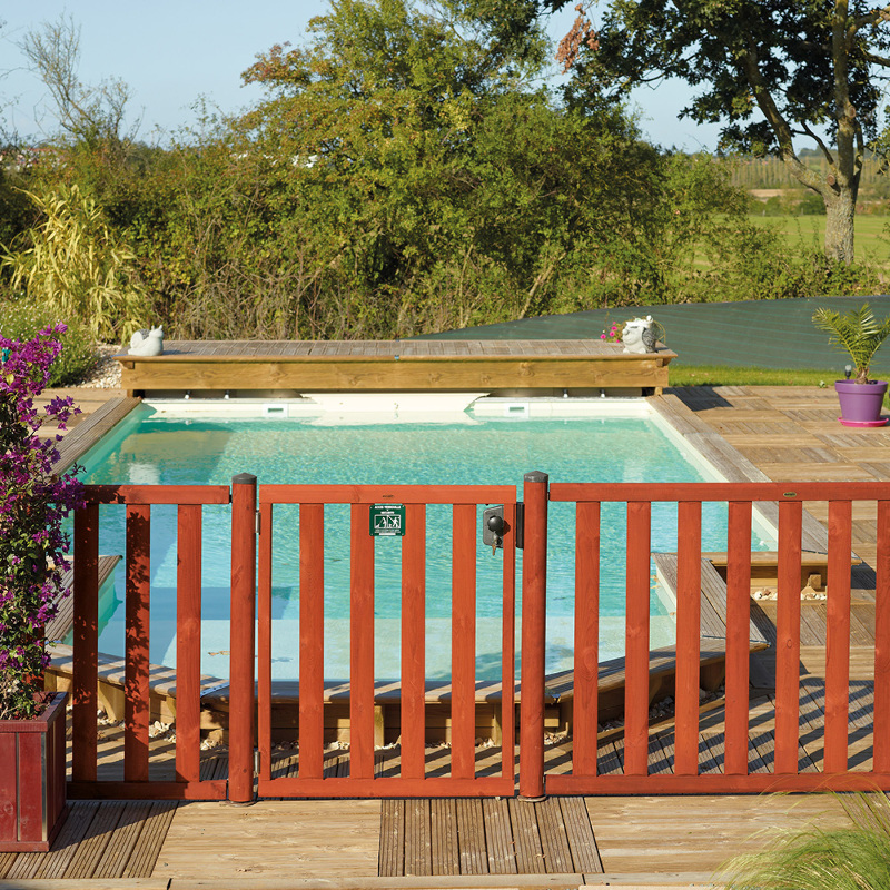 Barrière piscine en bois à barreaux Natural - Homologuée NF P90-306