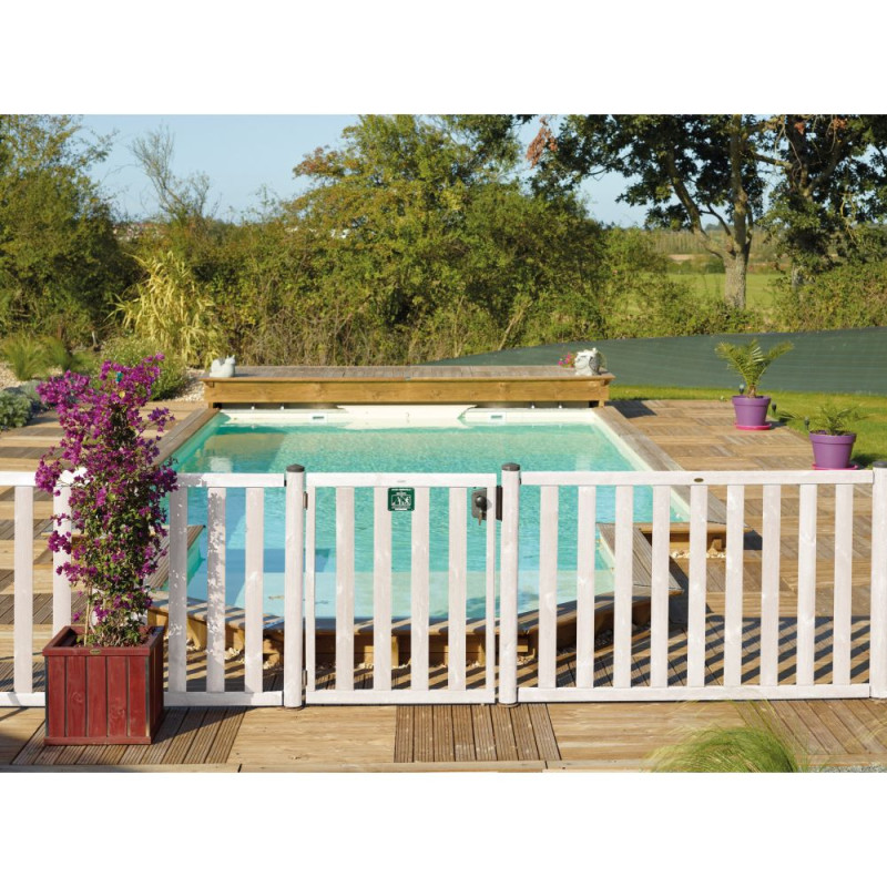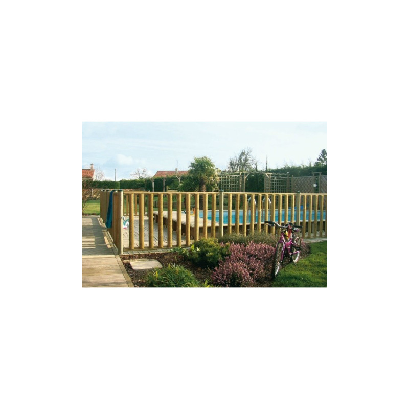 Barrière piscine bois Natural en pin traité autoclave classe 4. La barrière piscine en bois à barreaux permet de sécuriser l'accès à votre piscine pour éviter les noyades.