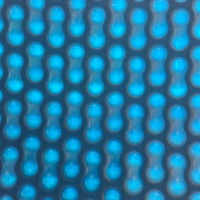 La forme de ses bulles assemblées en forme de 8 permettent une meilleure résistance à la dilatation de l’air, de plus, de part leur couleur opaque bleu nuit, elles transmettent et absorbent les rayons du soleil pour augmenter la températures de l'eau jusqu'à +8°C.