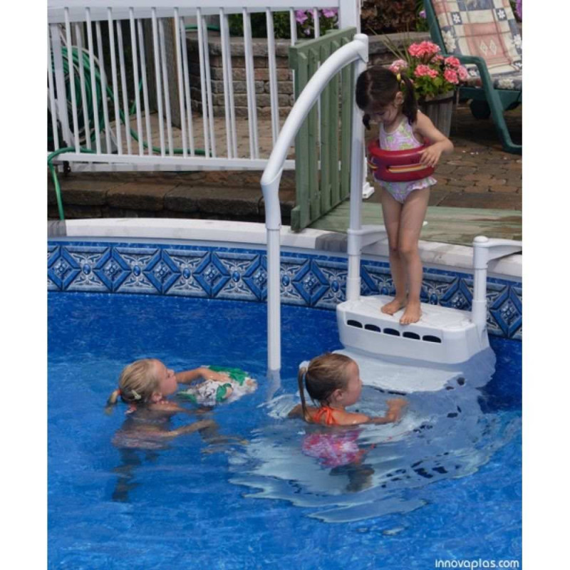 Cet escalier s'adapte aisément aux piscines de 1,20 à 1,32 m de hauteur et assure une sécurité maximale grâce à ses marches antidérapantes.